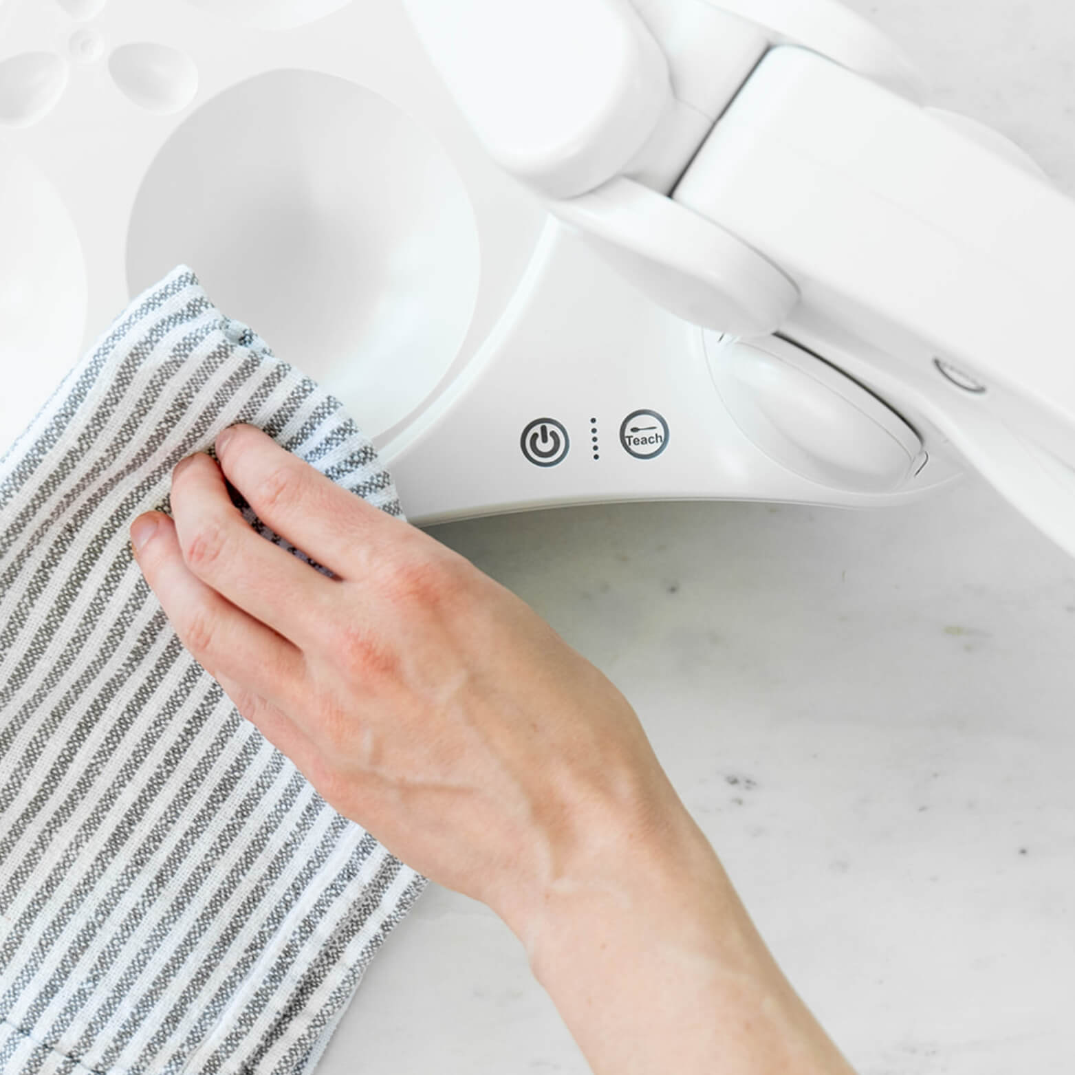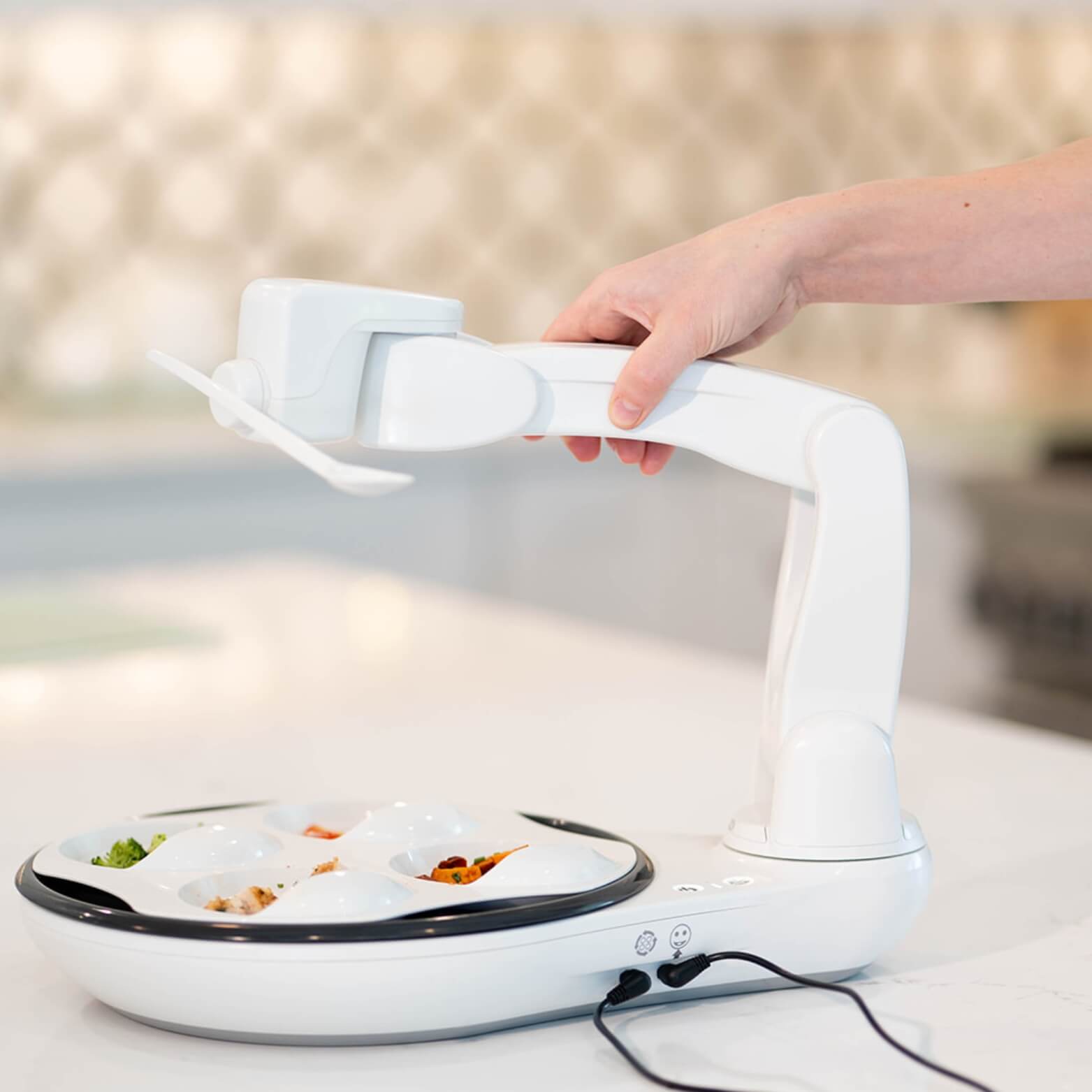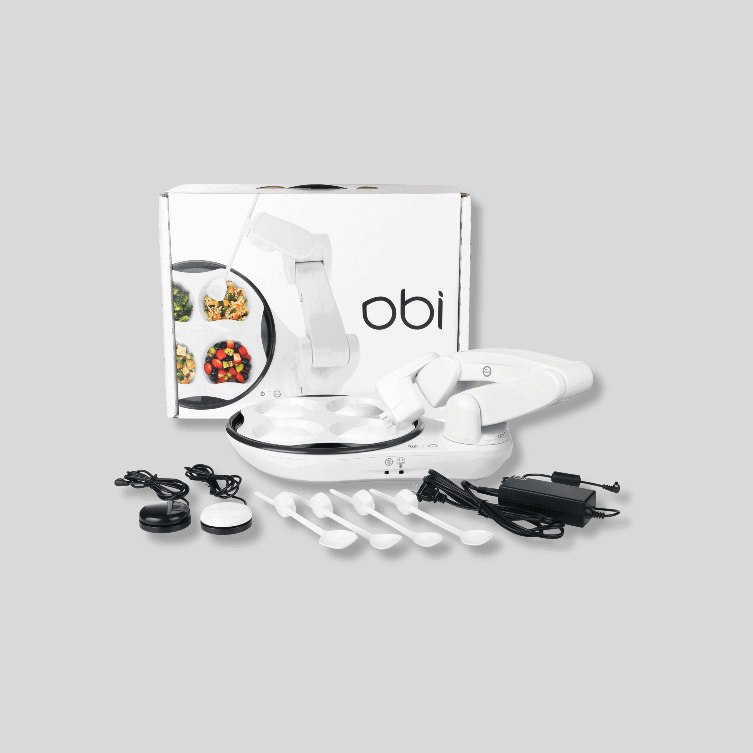 Obi Generation 3 is our latest and most advanced self-feeding device yet! Obi is a robotic assistive eating device for those with upper extremity limitations. Obi comes with a plate, placemat, four utensils (small, classic, large & spork), charger, two (2) button switches (black and white), a quick start guide, and instructions for use. Obi comes in a white carrying box with protective foam.
